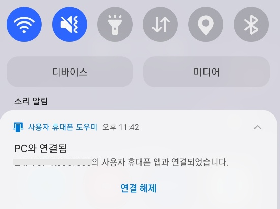 알림바 슥 내려서 연결 해제하면 된다.