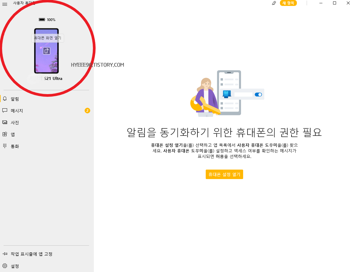 PC에 핸드폰을 연결할 수 있는 기능이다.