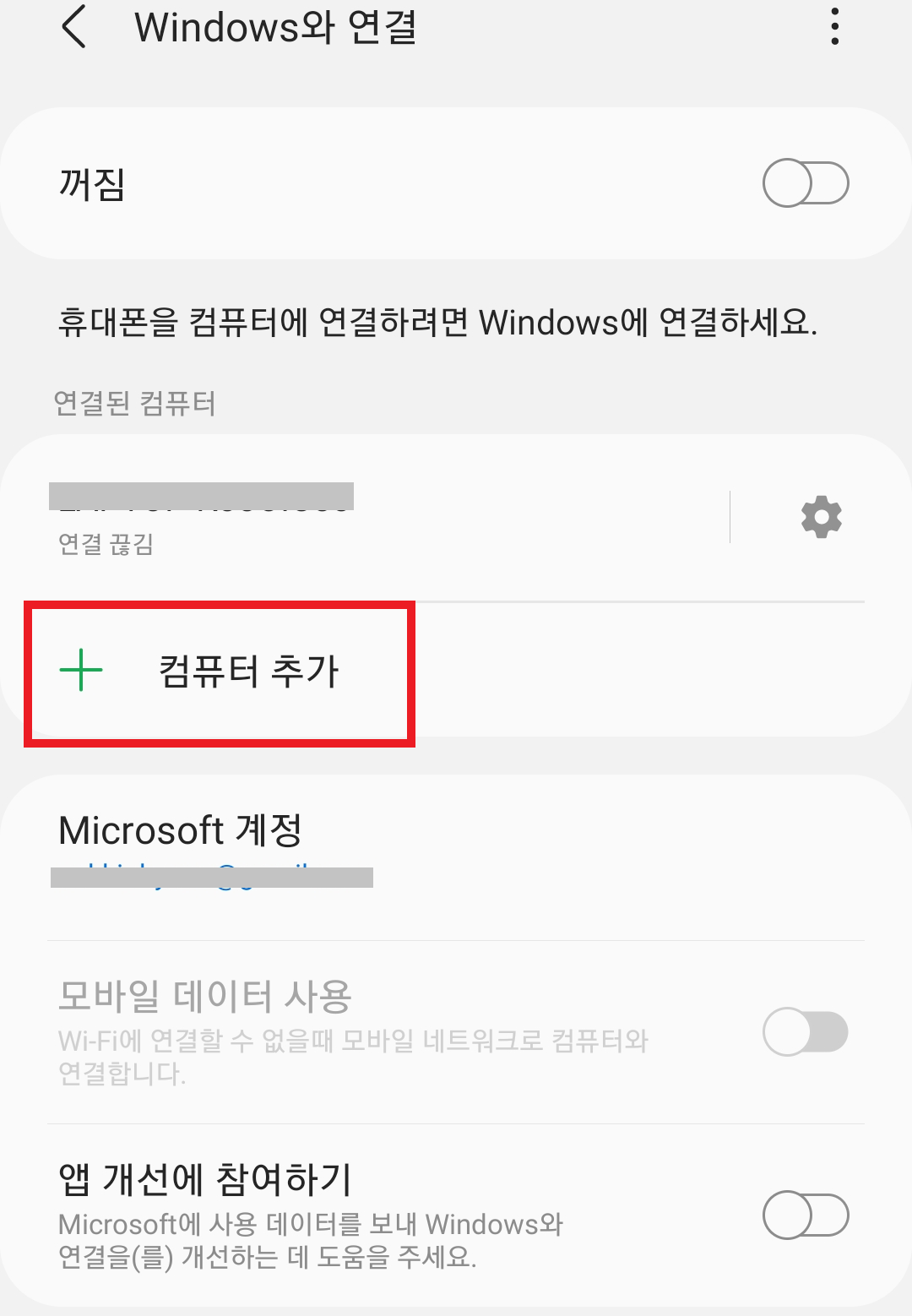 'Windows와 연결' 활성화로