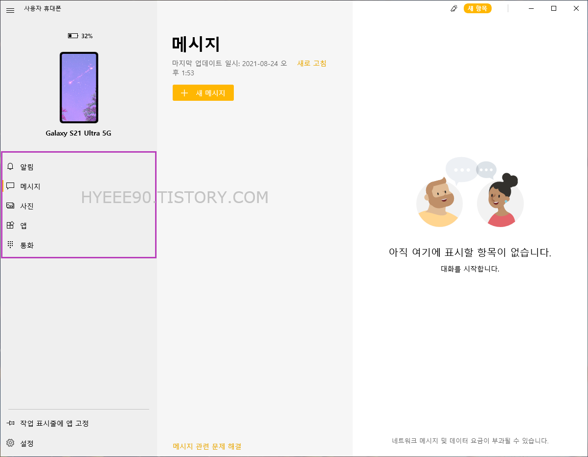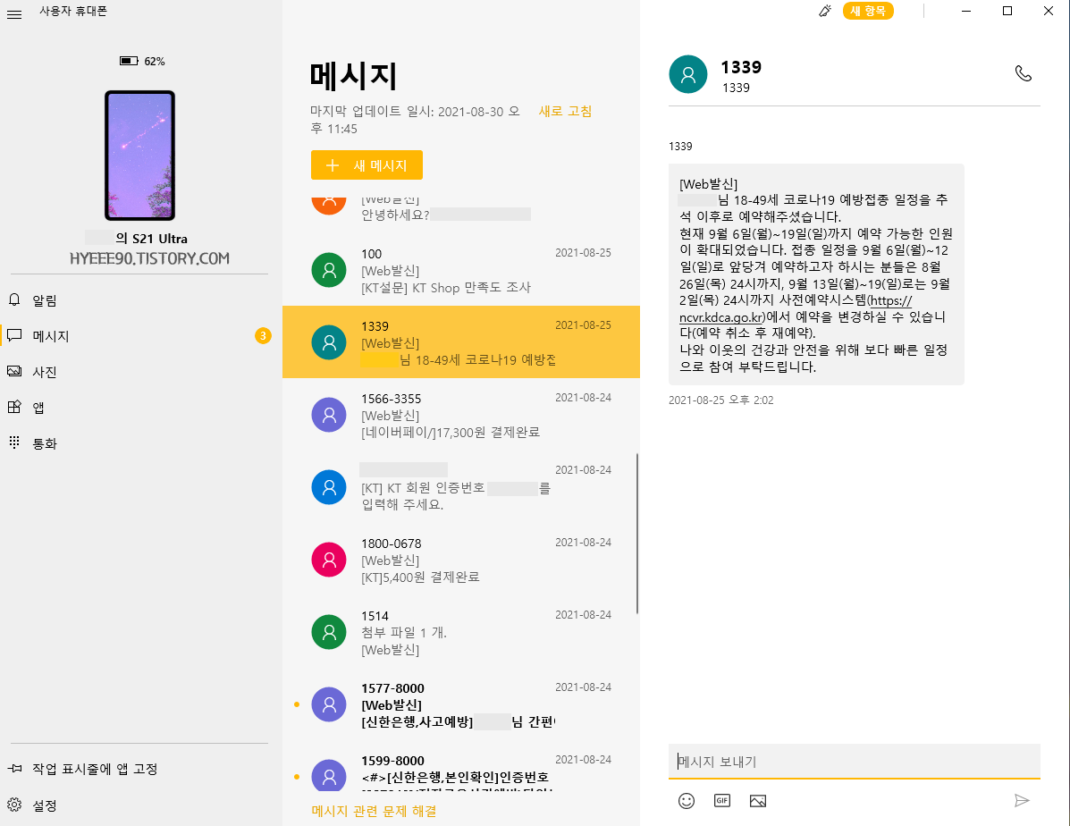 PC에서 문자메세지를 확인하고 보낼 수 있다.