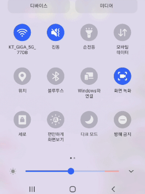 핸드폰 상단 알림바(= 빠른 설정메뉴)